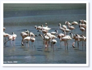 rosa als blau. Hier drängelten sich Hunderte von Flamingos Flügel an Flügel. Von einem