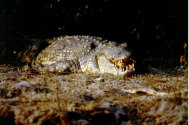 Auf Long Island sonnte sich gerade ein mindestens 4 m langes Nilkrokodil. Ein Elefant wühlte sich