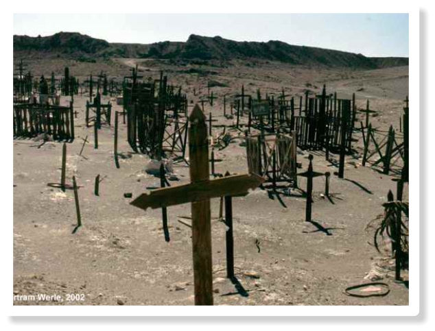 grauem Wüstenboden. Das Wasser holen sie sich aus 30-40 m Tiefe. Warum aber sterben teilweise die Bäume trotzdem ab? Wir