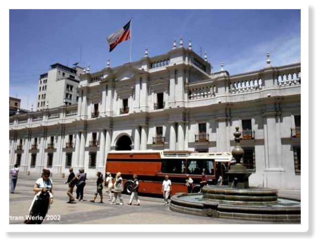 Mit unserem roten Bus ging es zunächst zum Palacio de la Moneda, seit Mitte des 19. Jh. Präsidial- und