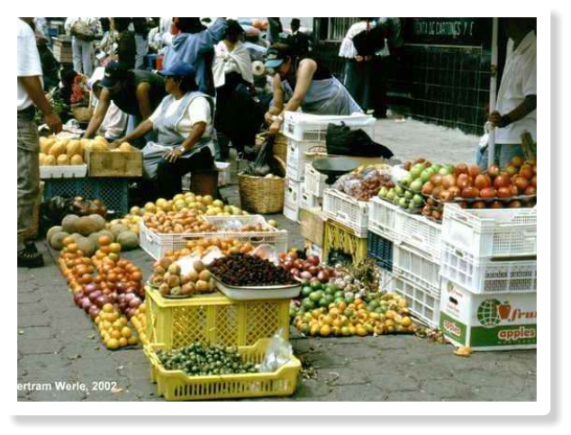 Panamahüte und Töpferwaren, aber auch Obst und Gemüse, Haushalts- und Kosmetikartikel und