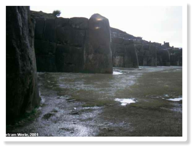 Steinbruch abgetragen wurden, weil man so auf bequemste Weise Baumaterial für Cuzco erhielt. Die Festung empfängt die