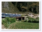 riesigen Felsbrocken im Weg liegen. Am Bahnhof Ollantaytambo hielt der Zug kurz, um noch ein paar Rucksack-Reisende