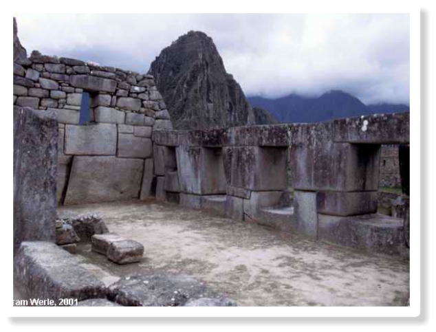 behauen. Daran erkennt man, dass in Machu Picchu viele Gebäude nie vollendet wurden. Links neben dem