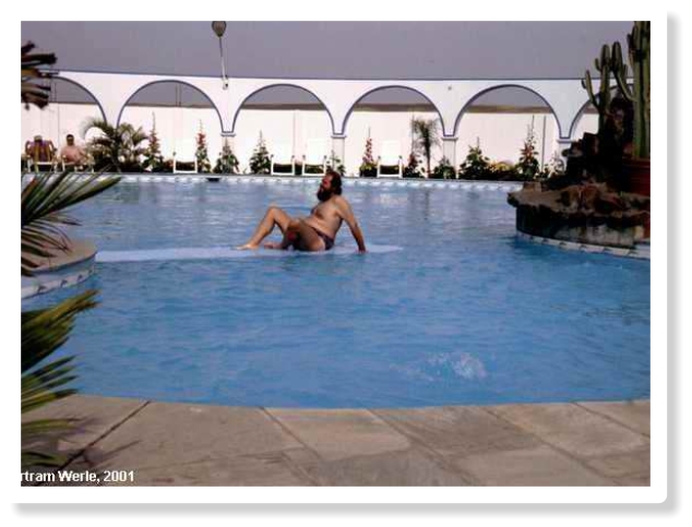 gewöhnlich Abfahrt. Bis zum heutigen Tag hatten wir per Bus schon 3.454 km zurückgelegt. Durch die Oase