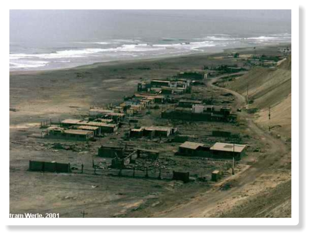 Pizarro gegründet. Etwas später mehrere "neue" Dörfer, alle durch den El Niño 1997/98 total zerstört, in den letzten Jahren etwas