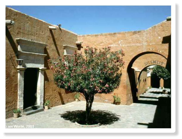 schmucklos. In diesen Innenhöfen zeigen Arkadenbögen, Friese, Wasserspeier und Brunnen die für das alte Arequipa typische