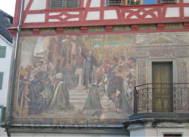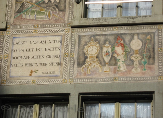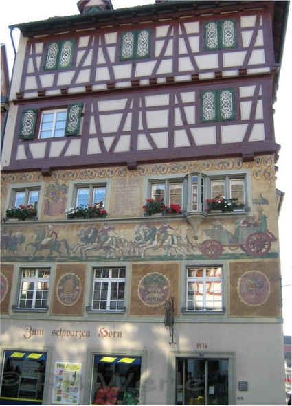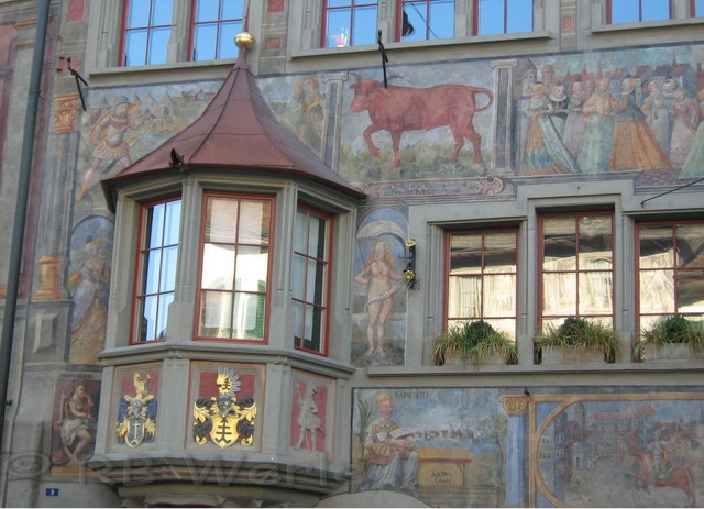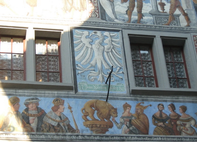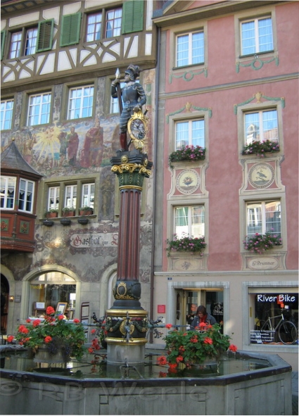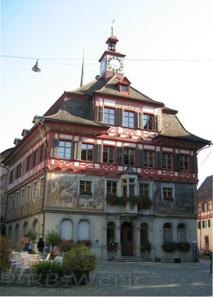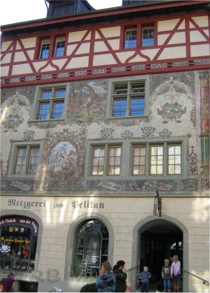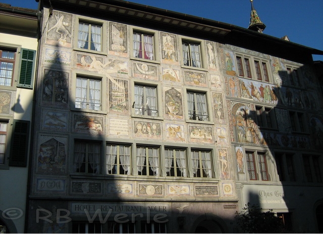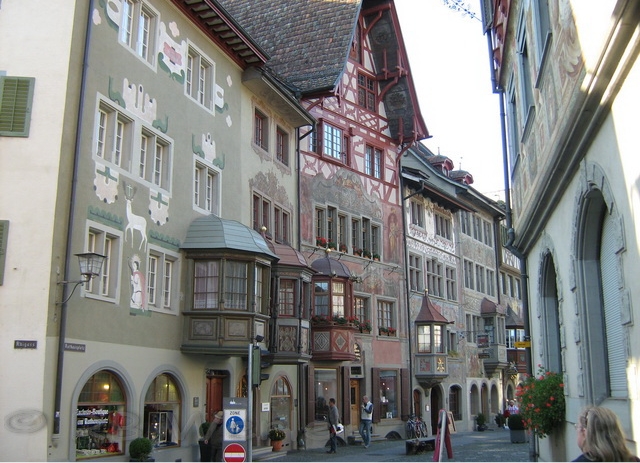 mittelalterliche Stadt Stein am Rhein. Beeindruckend sind die bemalten Häuserfassaden. Jedes Haus besitzt einen Namen passend zum