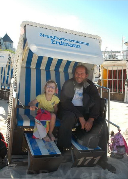 Zeit im großen Buddelkasten mit Wasseranschluss. Wir mieteten einen der vielen Strandkörbe und Julia ließ sich im kühlen Sand
