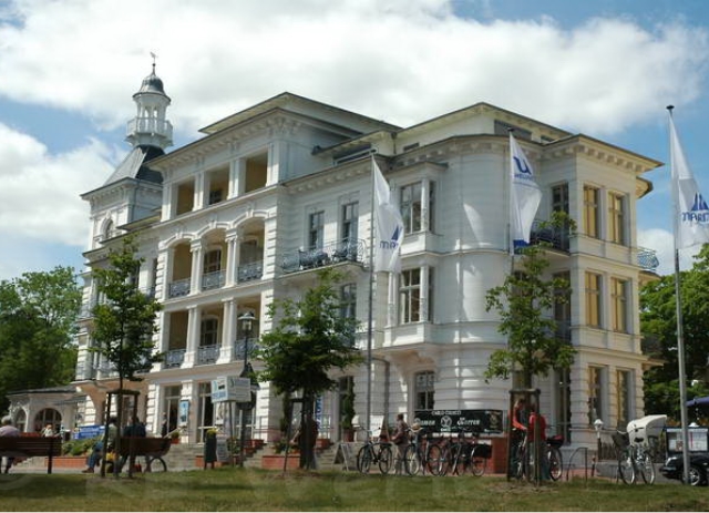 Heringsdorf und Ahlbeck sind bekannt für ihre Kaiserliche Bäderarchitektur, im wesentlichen weiße Villen und Gästehäuser im Baustil der