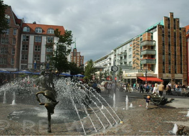 Universitäts-Platz verweilten wir und Julia nutzte die Gelegenheit zum Planschen im und am Brunnen der Lebensfreude.